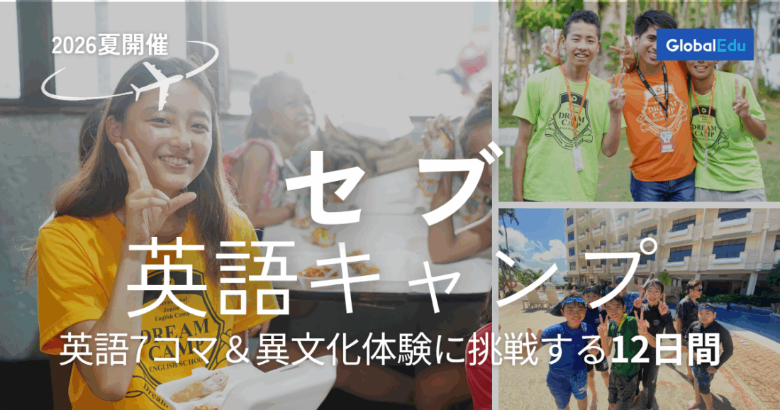 【2026年夏】セブ英語キャンプ|小4〜高3対象、ホテル寮滞在で1日7コマの英語レッスン&異文化体験に挑戦する12日間(5/25締切)