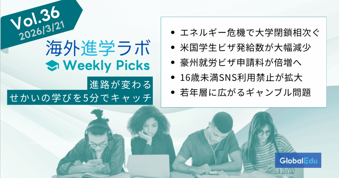 海外進学 Picks 3/21号|エネルギー危機で大学閉鎖・豪州ビザ費用倍増・SNS規制拡大