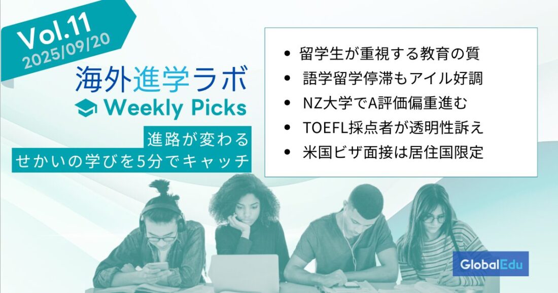 海外進学 Picks 9/13号|教育の質・語学留学停滞・NZ成績問題・TOEFL採点騒動・米国ビザ新ルール