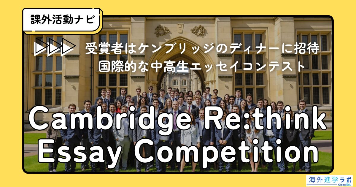 アイビーリーグやオックスブリッジと提携するオンラインリサーチプログラム「Cambridge Centre for International Research(CCIR)」は、国際的な中高生エッセイコンテスト「Cambridge Re:think Essay Competition 2025」への応募作品を、2025年5月10日(土)まで募集しています。