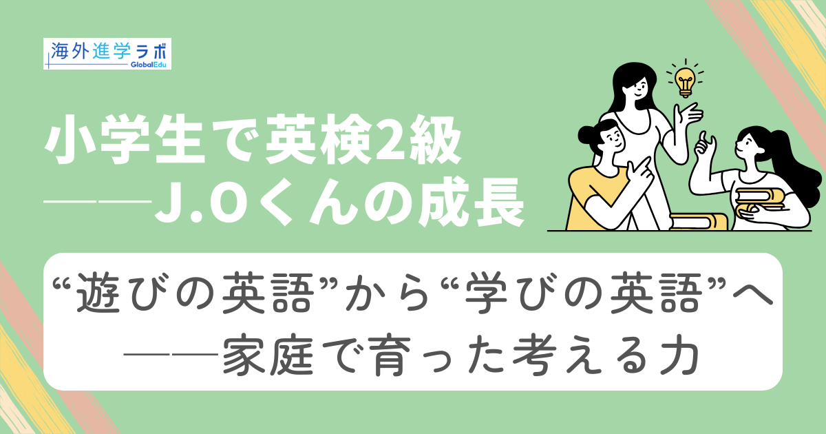 かつては英語を“遊び”として楽しんでいたJ.O.くん。しかし、英検という目標に挑戦する過程で、英語を「学ぶ力を育てるツール」として捉えるように変化しました。