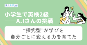 英検合格は、A.I.さんにとって“自分で学ぶ”楽しさを知るきっかけ。現在も英語を使って算数や理科を学び、探究の幅を広げています。