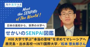 鹿児島県の進学校から、マレーシアの大学へ進学した松本悠太郎さん。