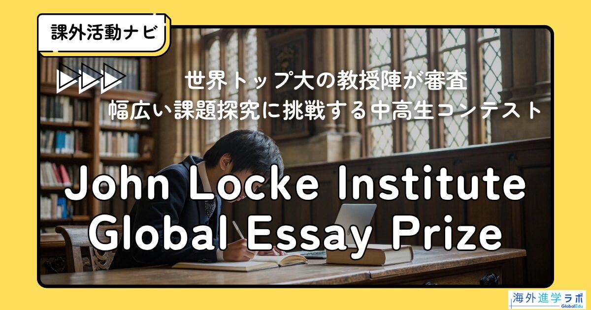 Jhon Locke Instituteは、世界規模のエッセイコンテストにおいて、学校のカリキュラムを超えて、幅広い課題探究に挑戦する生徒を歓迎しています。