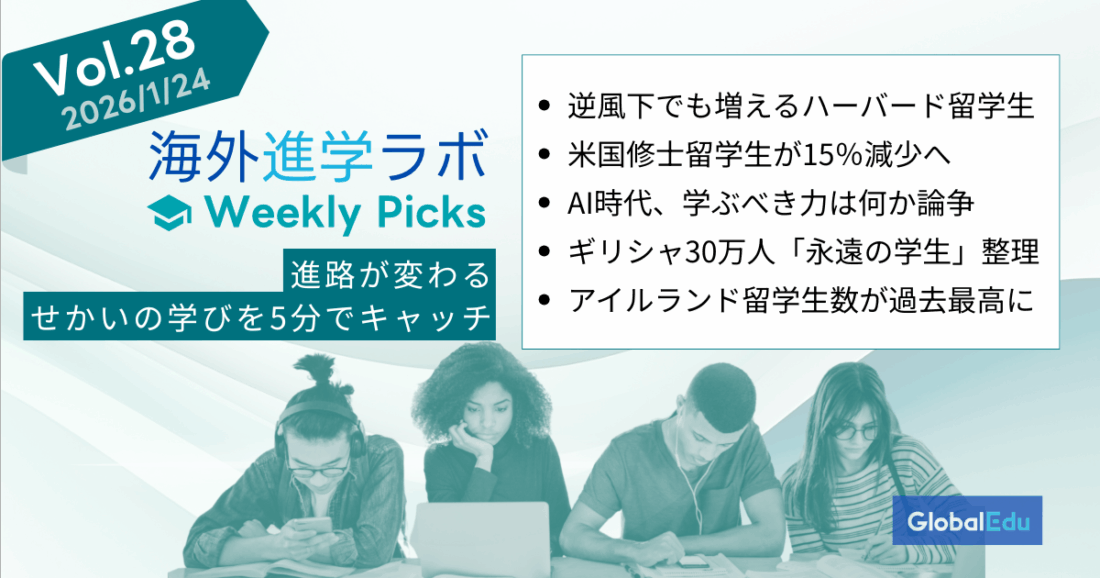 海外進学 Picks 1/24号|米国留学生ハーバード増加&修士15%減・AI時代の学力論争・アイルランド留学急増