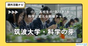 科学の芽という発表の場に向けて、それまであいまいだった不思議なこと・発見したことを、科学的な視点と思考で考え、それを人に伝えるためにまとめる醍醐味を経験できます。