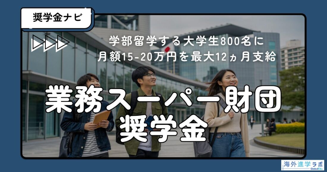 業務スーパー財団奨学金2025│学部留学する大学生800名に月額15または20万円を最大12ヵ月支給 1/25〆