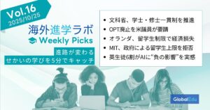 「海外進学ラボ Weekly Picks」は、グローバル進学に関心のある中高生・保護者向けに、世界の教育ニュースを厳選してお届けしています。進路のヒントが“5分”で見つかる週刊特集です。