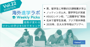 「海外進学ラボ Weekly Picks」は、グローバル進学に関心のある中高生・保護者向けに、世界の教育ニュースを厳選してお届けしています。進路のヒントが“5分”で見つかる週刊特集です。