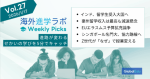 「海外進学ラボ Weekly Picks」は、グローバル進学に関心のある中高生・保護者向けに、世界の教育ニュースを厳選してお届けしています。進路のヒントが“5分”で見つかる週刊特集です。