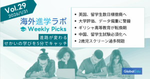 「海外進学ラボ Weekly Picks」は、グローバル進学に関心のある中高生・保護者向けに、世界の教育ニュースを厳選してお届けしています。進路のヒントが“5分”で見つかる週刊特集です。