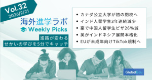 「海外進学ラボ Weekly Picks」は、グローバル進学に関心のある中高生・保護者向けに、世界の教育ニュースを厳選してお届けしています。進路のヒントが“5分”で見つかる週刊特集です。
