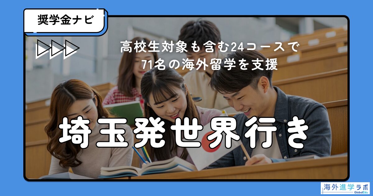 「埼玉県」は、海外留学を目指す若者を対象とする「2025年度埼玉発世界行き」奨学生を、2025年4月30日(水)まで募集しています。