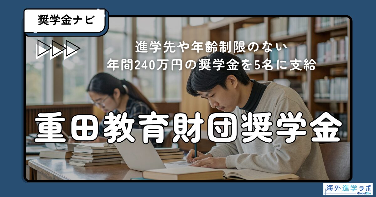 「公益財団法人重田教育財団」(東京·港区)は、海外の大学や大学院へ留学する日本人留学生を対象とした「海外留学奨学金」(返還不要)を、2025年5月1日(木)~6月30日(月)にかけて募集します。
